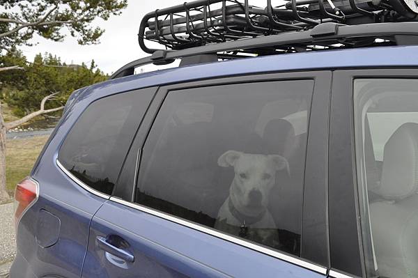 唉呀呀有隻被關在車裡顧家哀怨的狗兒