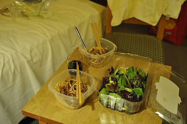 在不能開伙的旅館裡吃著簡單的晚晚餐