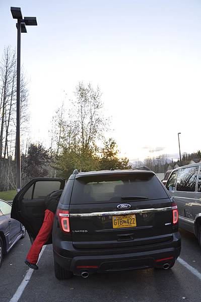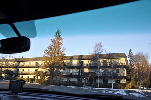 當我們在傍晚抵達fairbanks,需要導航帶進市區找到飯店時它自動關機了...
