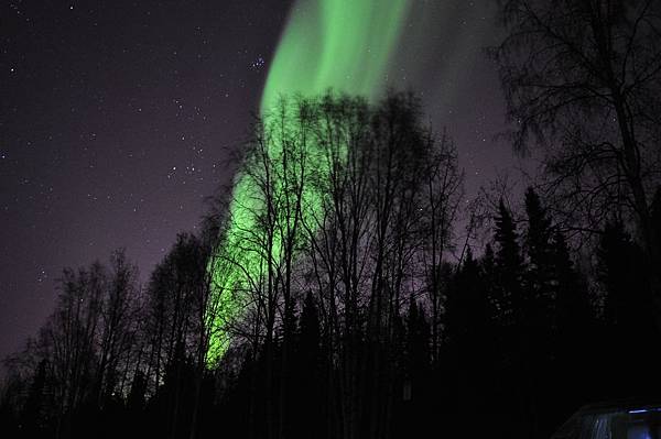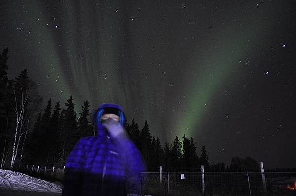 背包客棧上的指南(沿著University Of Alaska Fairbanks 旁邊的路Sheep Creek Rd. 一直走, 轉進Ester Dome Rd. 再一直開 到交叉路時, 走右邊的路,再一直走, 那邊有很空曠的地方可以看極光)