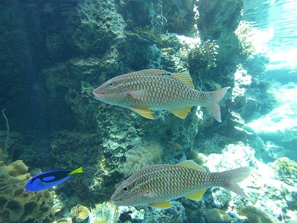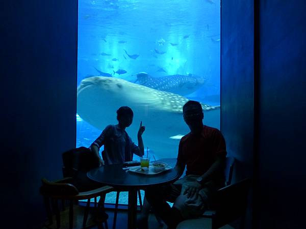 兩位主角: 鯨鯊與鬼蝠魟 皆是在這裡以人工復育養殖