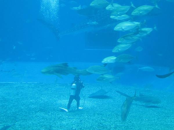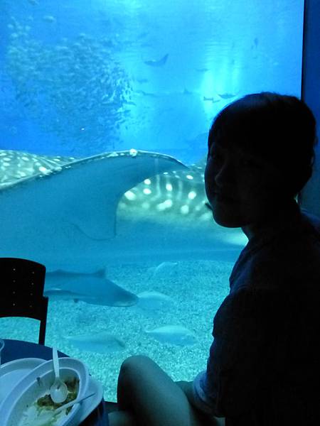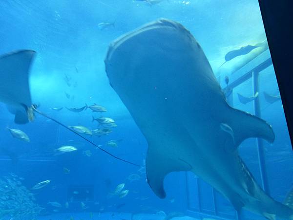 時不時被太靠近的鯨鯊或魟嚇到 好~大一隻