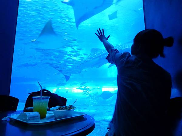 再次超超~幸運在Ocean Blue Cafe搶到貼水族箱的位置